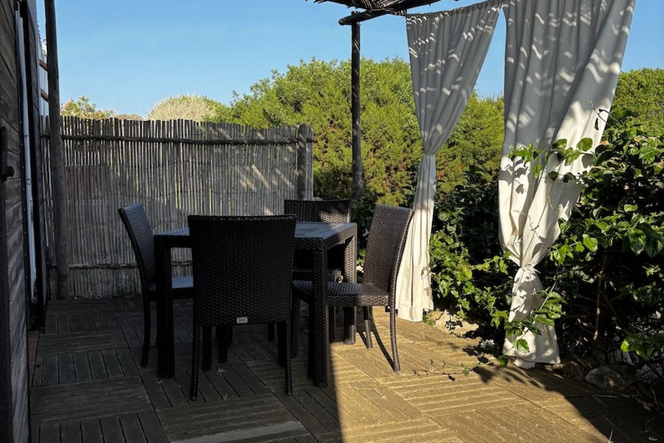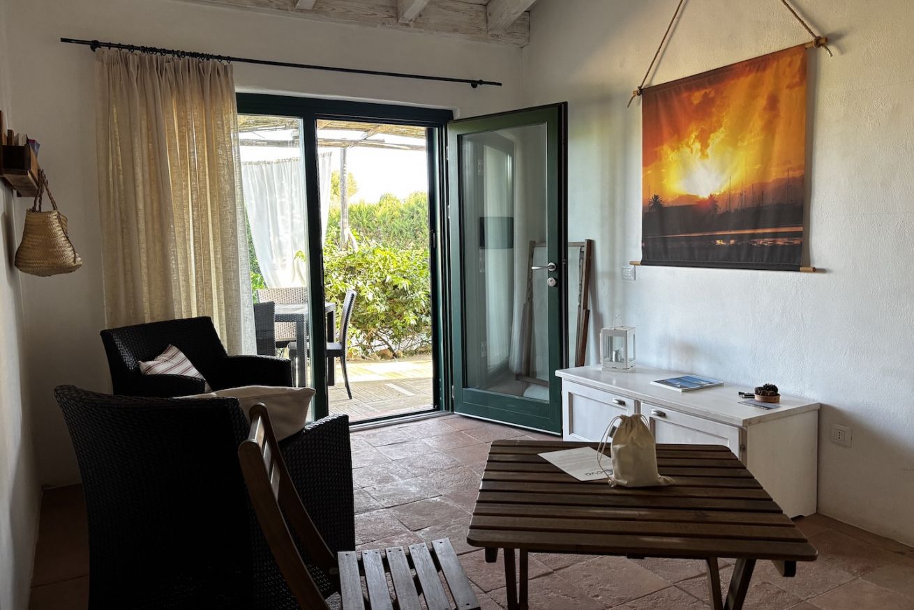 Piccolo appartamento, unico nel suo genere perchè vista giardino. Tutto su un piano e più intimo. Camera, bagno e soggiorno con cucina. Veranda estrema attrezzata.
